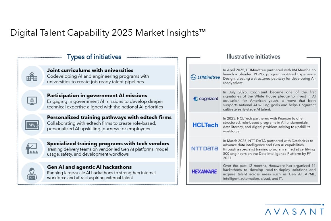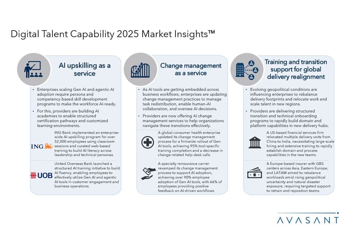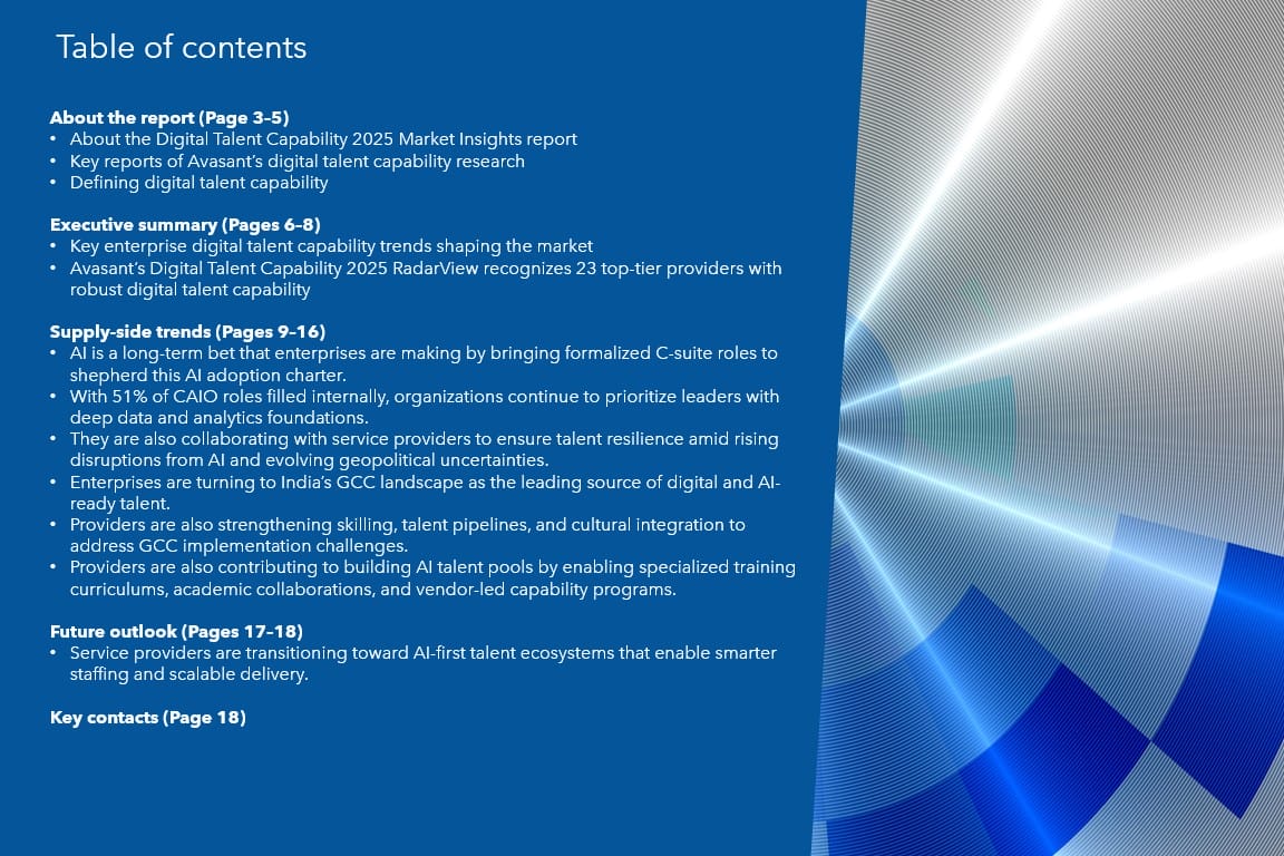 Read the Research Byte based on this report. Please refer to Avasant’s Digital Talent Capability 2025 RadarView™ for detailed insights on the service providers and supply-side trends.