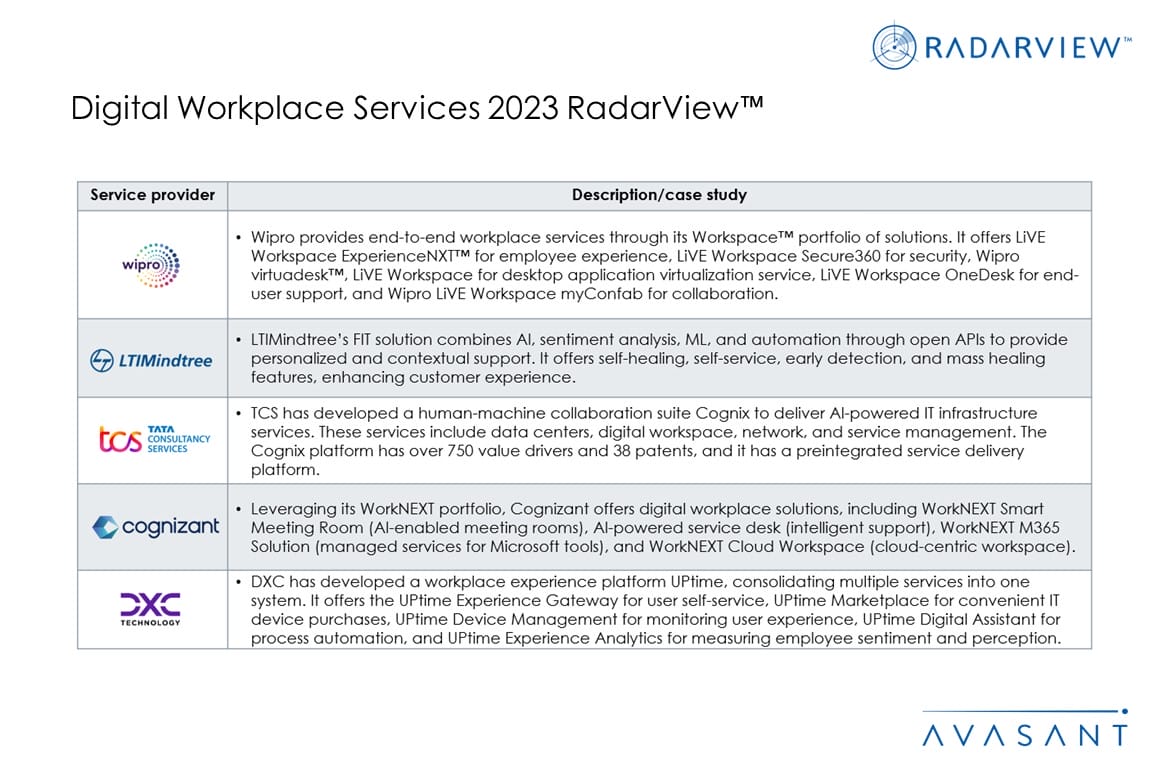 Please refer to Avasant’s Digital Workplace Services 2023 Market Insights™ for demand-side trends.