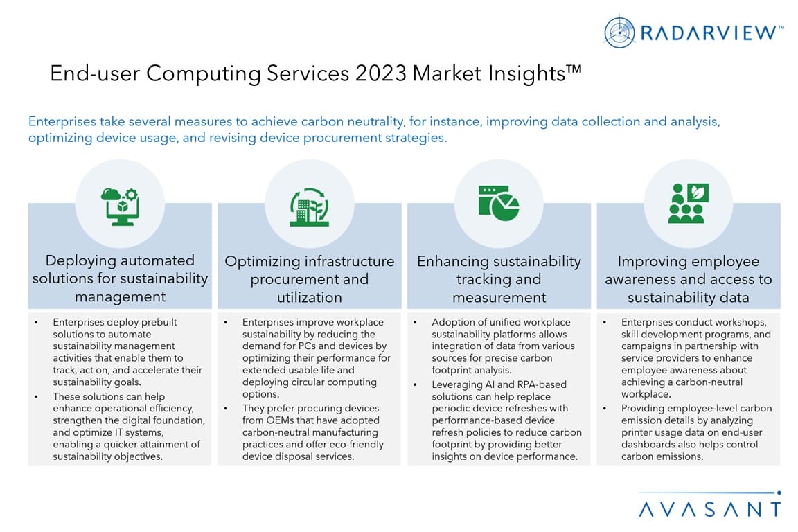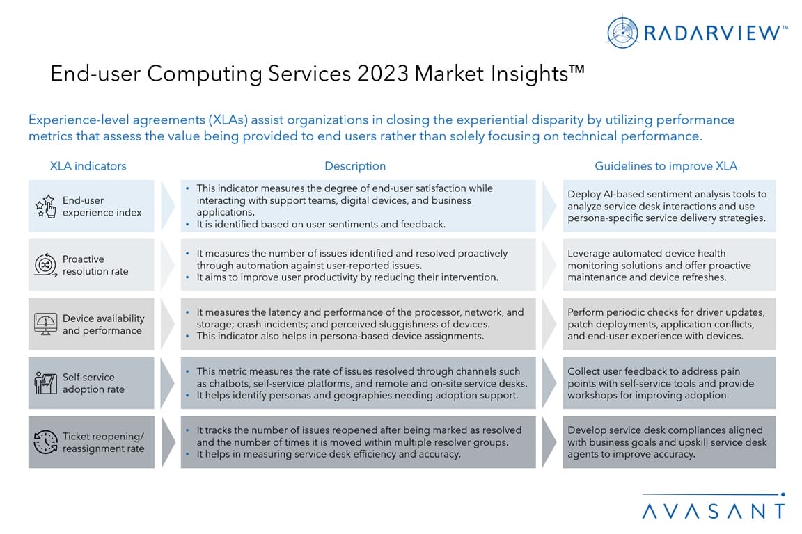 Please refer to Avasant’s End-user Computing Services 2023 RadarView™ for detailed insights on the service providers and supply-side trends.