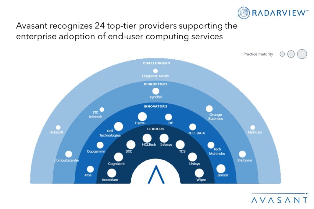 Both demand-side and supply-side trends are covered in Avasant’s End-user Computing Services 2023 Market Insights™ and End-user Computing Services 2023 RadarView™, respectively. These reports present a comprehensive study of end-user computing service providers and closely examine the market leaders, innovators, disruptors, and challengers.