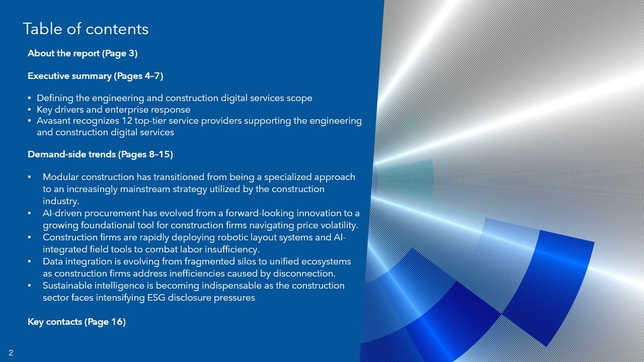 Read the Research Byte based on this report. Please refer to Avasant’s Engineering and Construction Digital Services 2025 RadarView™ for detailed insights on the service providers and supply-side trends.