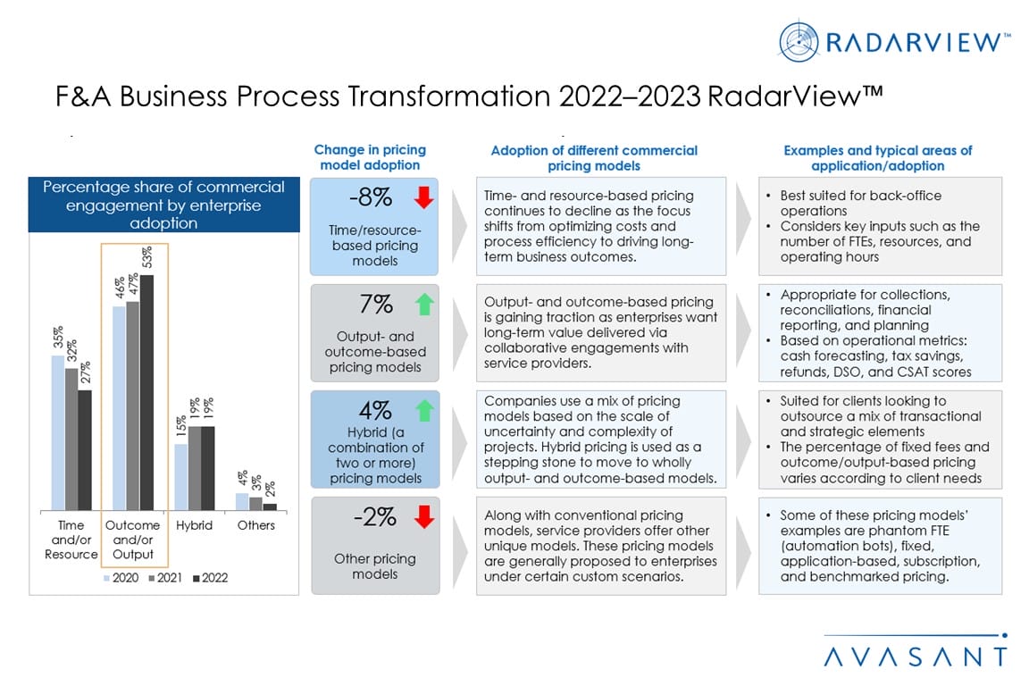 Avasant’s research and other publications are based on information from the best available sources and Avasant’s independent assessment and analysis at the time of publication. Avasant takes no responsibility and assumes no liability for any error/omission or the accuracy of information contained in its research publications. Avasant does not endorse any provider, product or service described in its RadarView™ publications or any other research publications that it makes available to its users, and does not advise users to select only those providers recognized in these publications. Avasant disclaims all warranties, expressed or implied, including any warranties of merchantability or fitness for a particular purpose. None of the graphics, descriptions, research, excerpts, samples or any other content provided in the report(s) or any of its research publications may be reprinted, reproduced, redistributed or used for any external commercial purpose without prior permission from Avasant, LLC. All rights are reserved by Avasant, LLC.