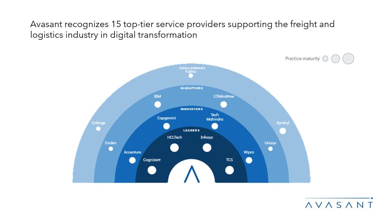 Read the Research Byte based on this report. Please refer to Avasant’s Freight and Logistics Digital Services 2024 RadarView™ for detailed insights on the service providers and supply-side trends.