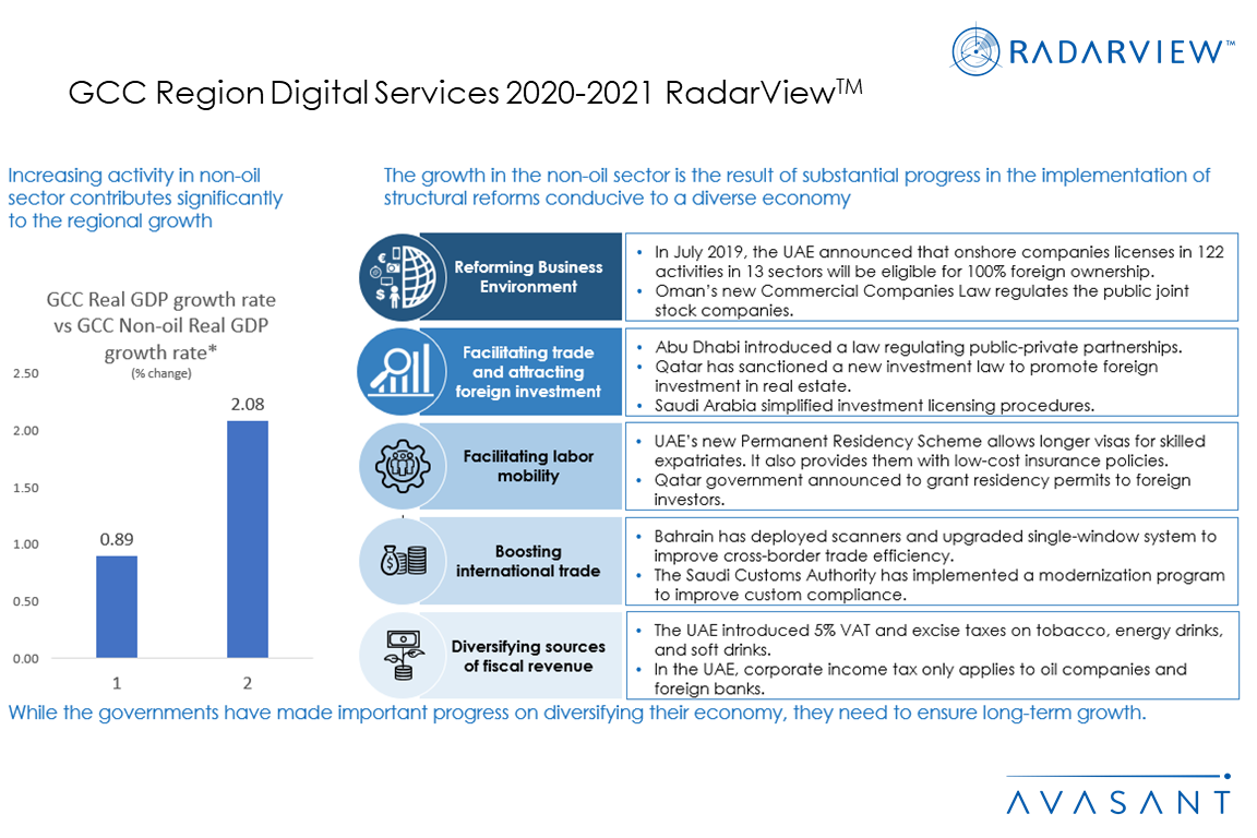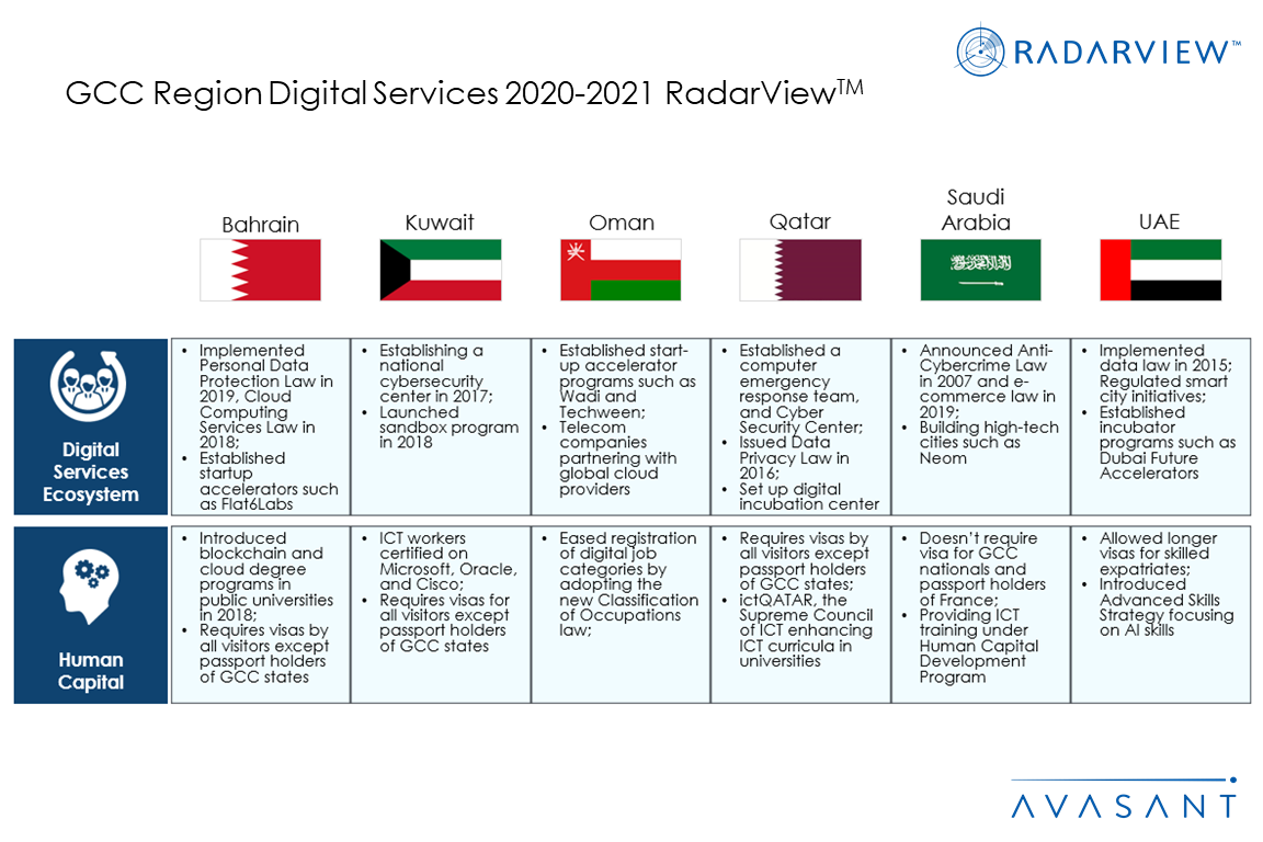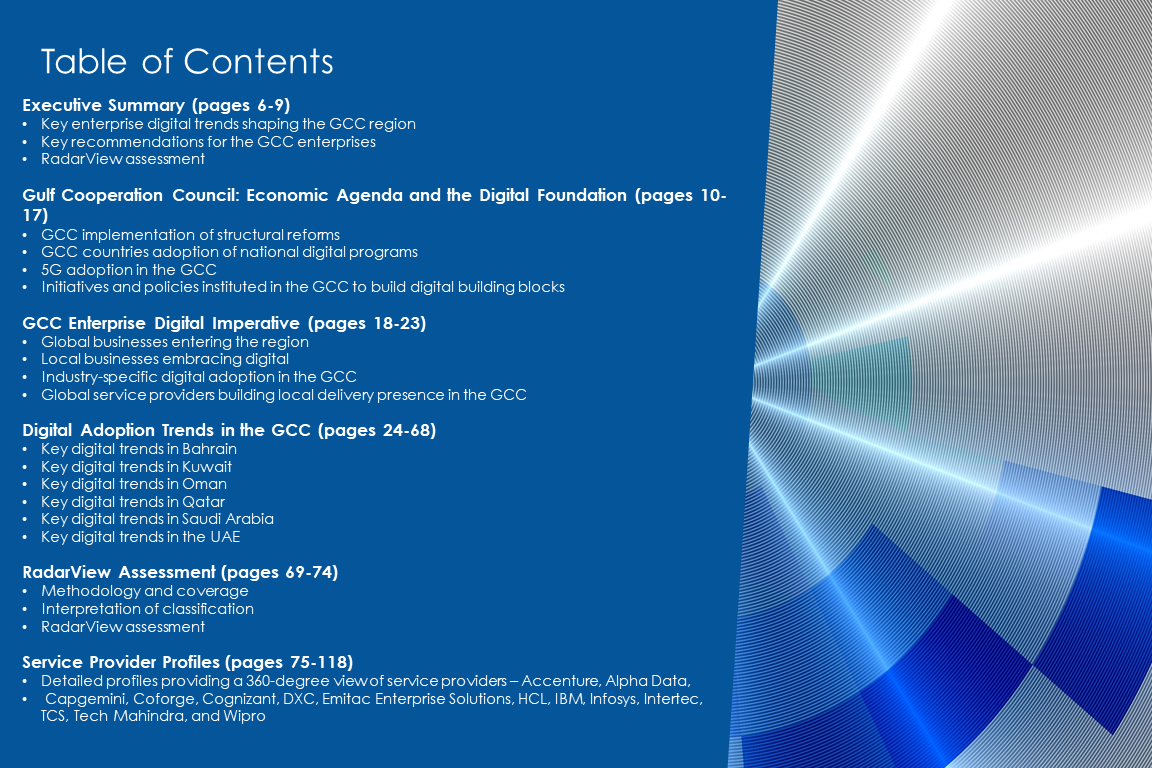 The GCC Region Digital Services 2020-2021 RadarView report addresses GCC enterprises’ needs and helps them identify and adopt the right technologies combined with appropriate implementation strategies. It also identifies the key service providers and system integrators that can help these enterprises in business transformation.