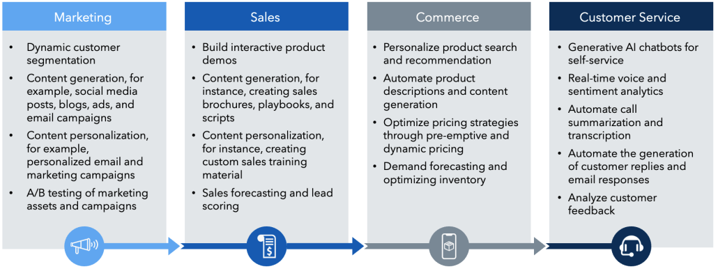 Fig 1: Generative AI use cases across customer service, marketing, sales, and digital commerce services