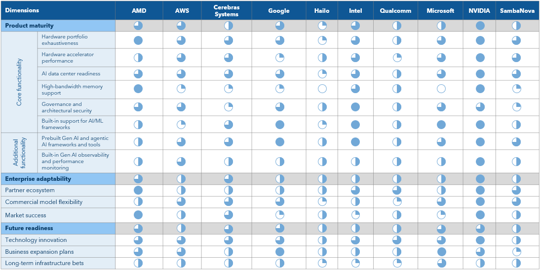 Our evaluation of vendors is based on public disclosures, case studies, product sheets, executive interviews, and our ongoing market interactions. We assess the providers’ Gen AI infrastructure implementation capabilities across enterprises, leading to our recognition of the vendors that have brought the most value to the market.
