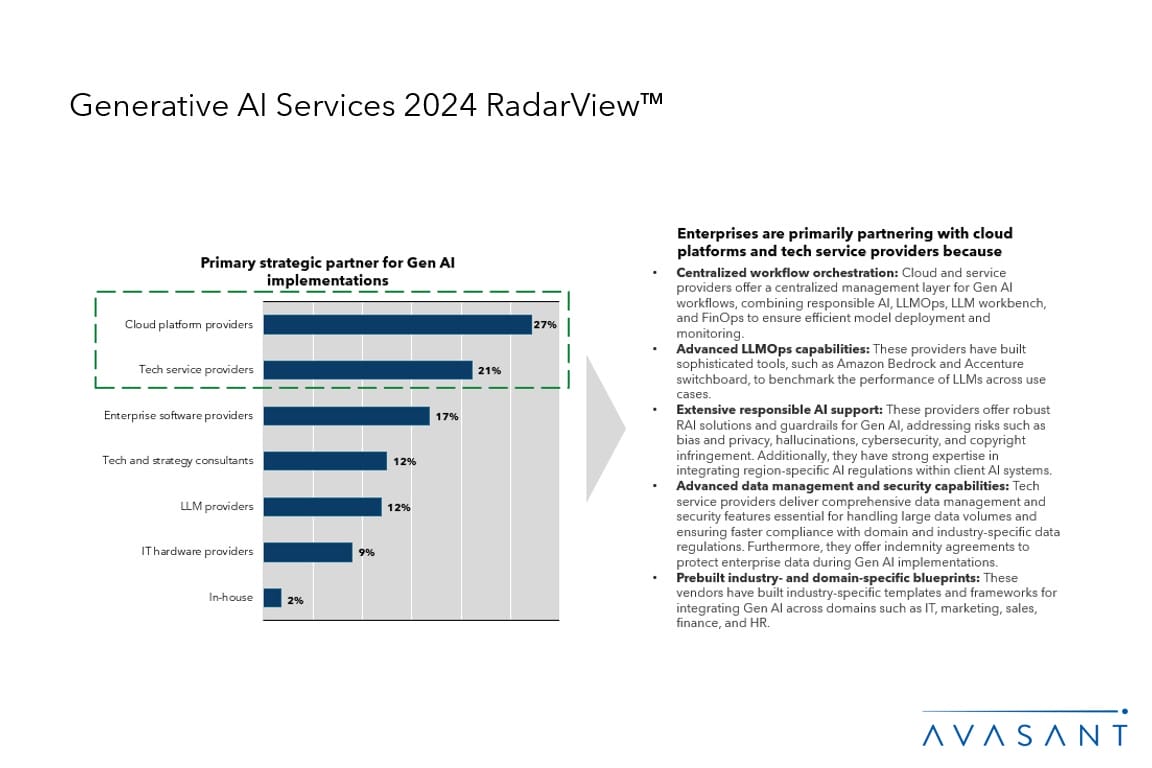 Read the Research Byte based on this report. Please refer to Avasant’s Generative AI Services 2024 RadarView™ for detailed insights on the service providers and supply-side trends.