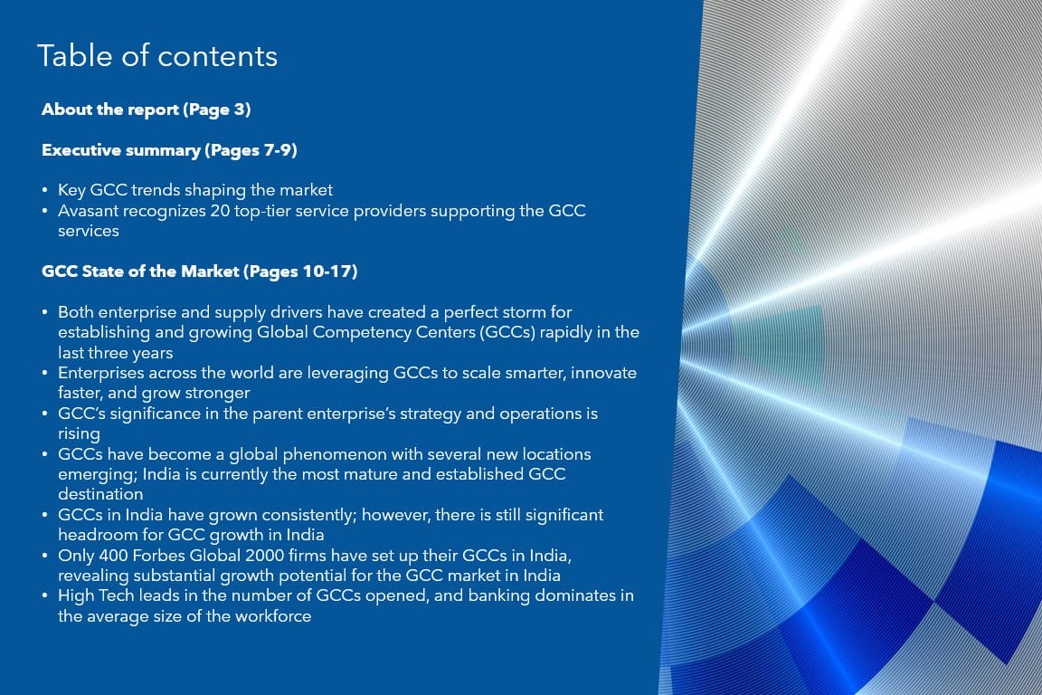 This report provides a comprehensive overview of the current state of the GCC market and Avasant’s outlook on its future trajectory, that can help enterprises fine-tune their GCC strategies.
