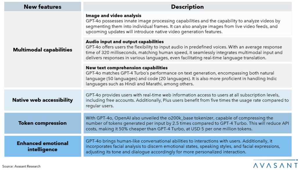 GPT-4o’s groundbreaking multimodality feature capable of processing text, image, voice, and video has sent shockwaves through the market. This technological marvel has eliminated the need for separate, off-the-shelf tools for text-to-speech and real-time language translation, as these capabilities are now seamlessly integrated. Here are three pivotal enterprise areas poised for significant transformation: