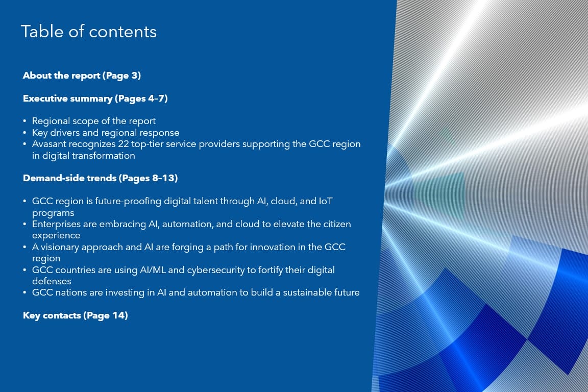 This report identifies key demand-side trends in the Gulf Cooperation Council (GCC) region that can help enterprises fine-tune their digital strategies. It also provides an overview of enterprise challenges in this region based on Avasant’s assessment.