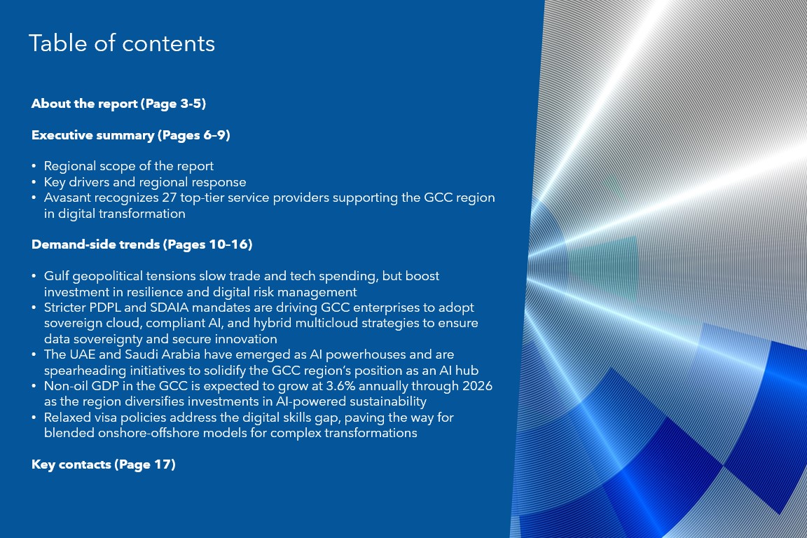 Read the Research Byte based on this report. Please refer to Avasant’s Gulf Cooperation Council (GCC) Digital Services 2026 RadarView™ for detailed insights on the service providers and supply-side trends.