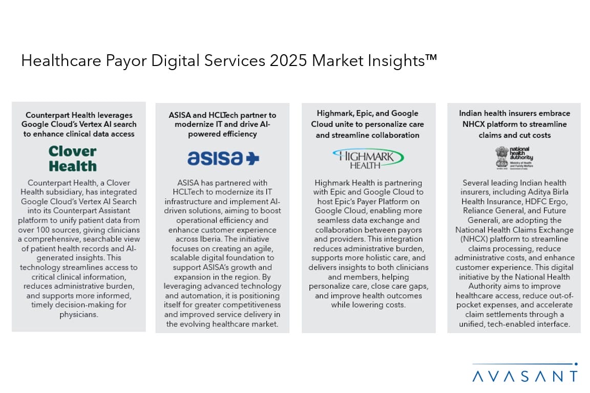Healthcare payors are rapidly accelerating digital transformation in response to rising costs, regulatory pressures, talent shortages, and the industry’s shift toward value-based care. Central to this transformation is the adoption of AI, automation, and advanced analytics, which streamline administrative workflows, reduce operational costs, and enhance organizational agility. To meet growing interoperability mandates, payors are implementing API-driven architectures and adopting Fast Healthcare Interoperability Resources (FHIR) standards. These efforts are supported by advanced data integration platforms that ensure secure, seamless access to health data across systems. Digital tools are also improving member engagement through AI-powered chatbots, mobile apps, and unified digital portals that deliver personalized experiences and real-time support. Internally, these technologies enable workforce upskilling and foster collaboration, contributing to a more agile, future-ready organization. Meanwhile, collaboration with providers is deepening through the codesign of alternative payment models that align incentives, improve care outcomes, and share financial risk. Together, these digital strategies position payors to thrive in a more connected, value-driven healthcare ecosystem.