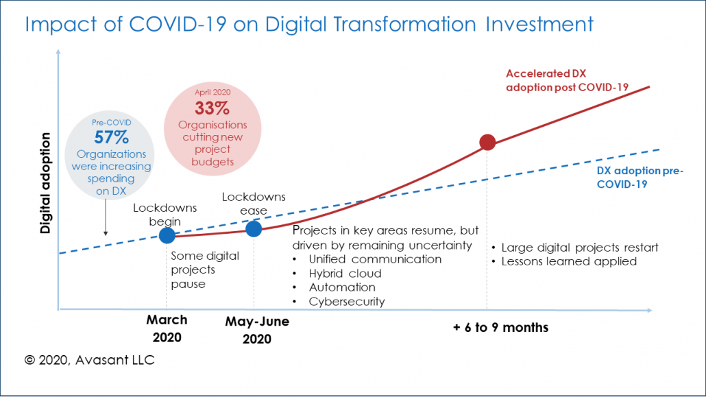 The pandemic has thrown a wrench into many a company’s technology plans. In the short term, many companies responded to the pandemic by cutting back on new projects, including digital transformation initiatives. But in the longer term, as we come out of the crisis, digital transformation initiatives will accelerate faster than before the pandemic. More specifically, large-scale digital projects will restart, digital investments will scale up, and lessons learned will be applied. More companies will understand that digital-driven innovation is an imperative to stay ahead of the competition.