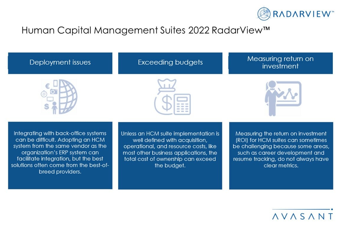 This RadarView helps organizations identify the right human capital management (HCM) suite to handle core HR operations. It begins with a summary of key trends shaping the HCM marketplace. We continue with a detailed assessment of 14 vendors offering HCM suites. Each profile provides an overview of the vendor, its HCM offering, and a list of clients and partnerships, along with brief client case studies. Each profile concludes with analyst insights on the provider’s product maturity, enterprise adaptability, and future readiness.