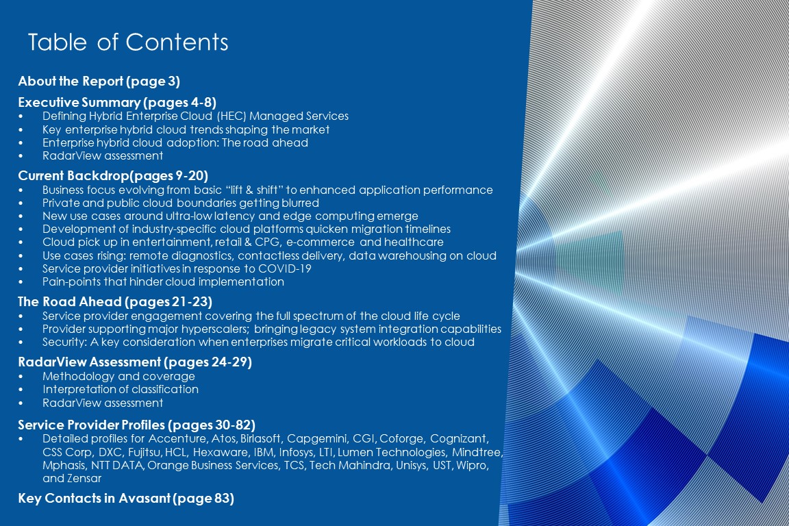This RadarView includes an analysis of the following digital service providers in the hybrid cloud space: Accenture, Atos, Birlasoft, Capgemini, CGI, Coforge, Cognizant, CSS Corp, DXC, Fujitsu, HCL, Hexaware, IBM, Infosys, LTI, Lumen Technologies, Mindtree, Mphasis, NTT DATA, Orange Business Services, TCS, Tech Mahindra, Unisys, UST, Wipro, and Zensar.