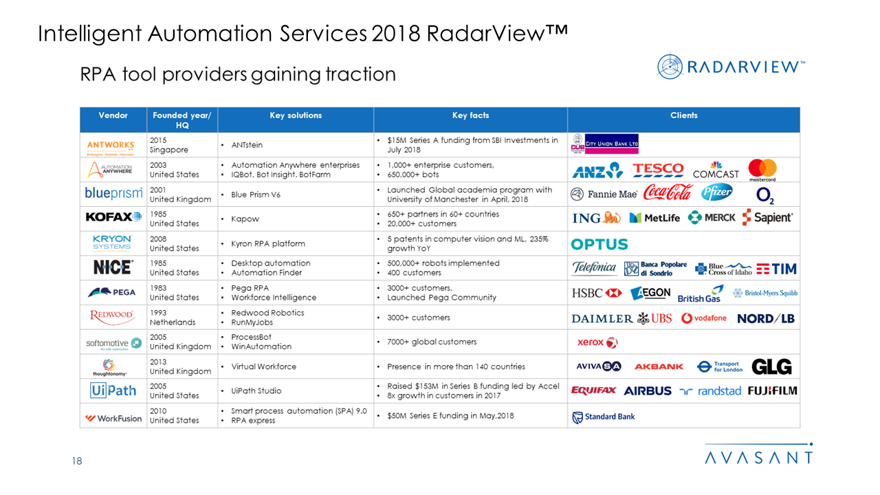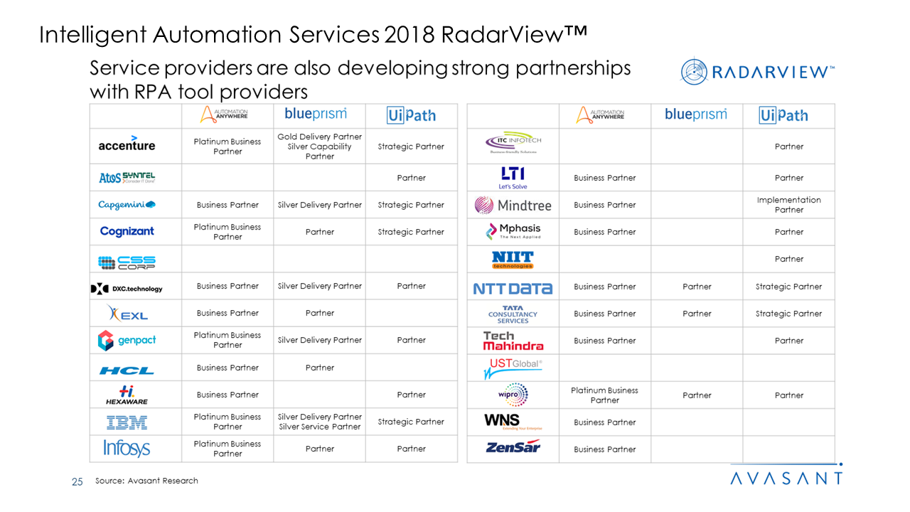 Refer to our latest report Intelligent Automation Services 2020-2021 Radarview™