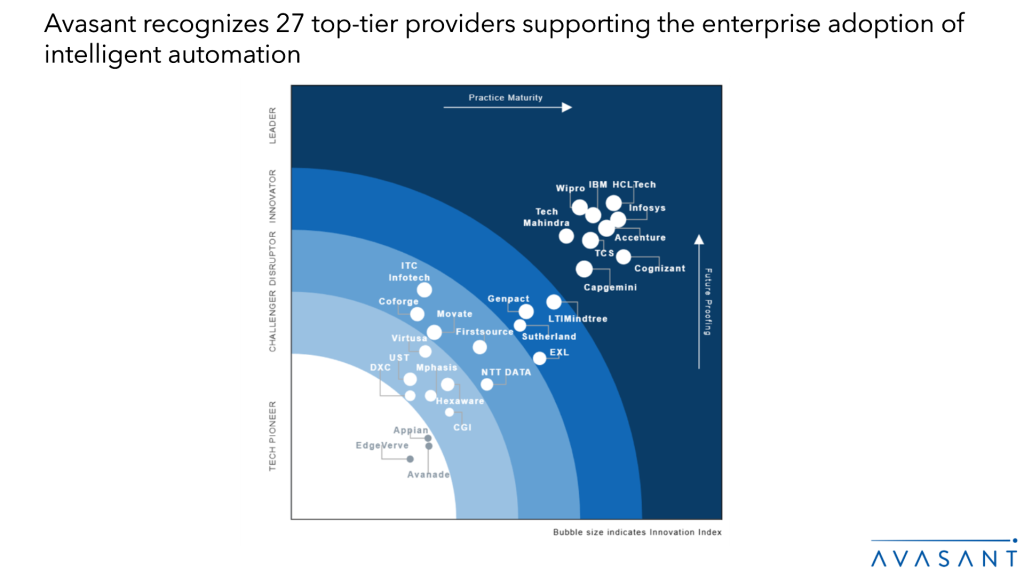 This RadarView includes a detailed analysis of the following intelligent automation service providers: Accenture, Avanade, Appian, Capgemini, CGI, Coforge, Cognizant, DXC, EdgeVerve, EXL, Firstsource, Genpact, HCLTech, Hexaware, IBM, Infosys, ITC Infotech, LTIMindtree, Movate, Mphasis, NTT DATA, Sutherland, TCS, Tech Mahindra, UST, Virtusa, and Wipro.