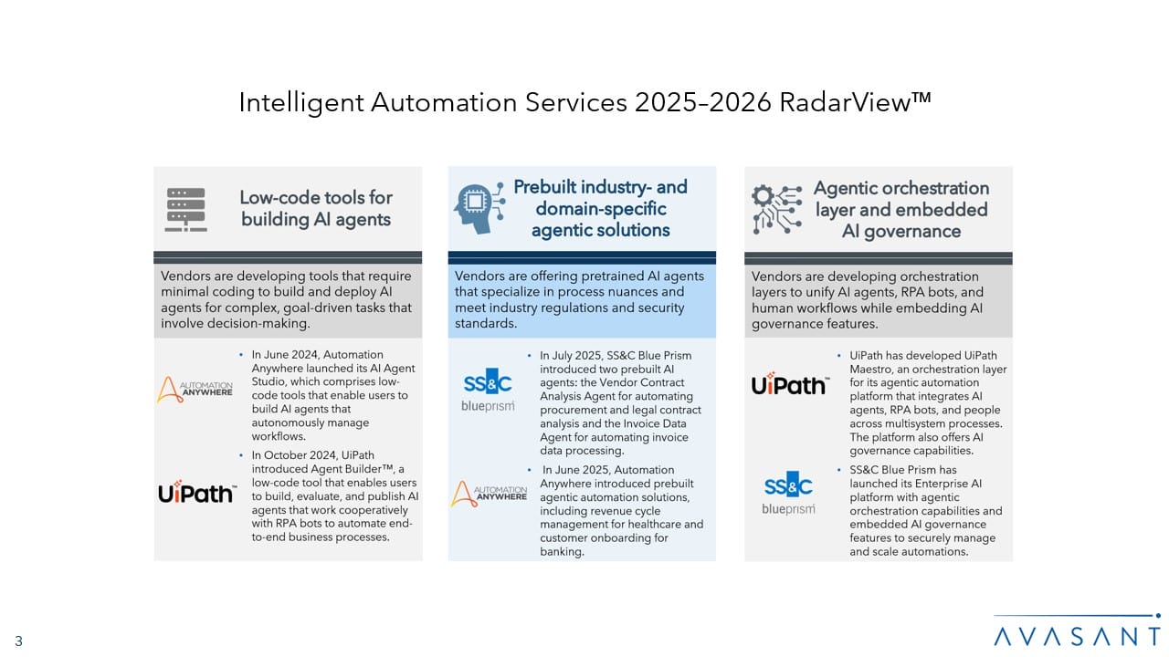 Read the Research Byte based on this report. Please refer to Avasant’s Intelligent Automation Services 2025–2026 Market Insights™ for detailed insights on the enterprises and demand-side trends.