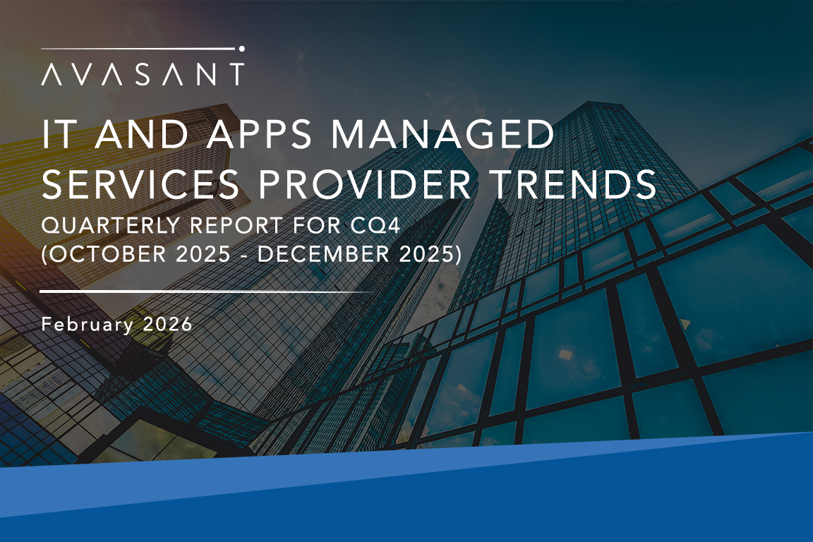 In this quarterly report, Avasant provides key information on IT and apps managed services provider trends. The report covers key information on the IT services industry and the provider ecosystem. It covers the service provider facts and figures (including revenue and resource trends) and executive sentiment from the service provider community. The report covers trends across a gamut of IT services, including but not limited to IT infrastructure, application, and end-user services. The geographic coverage for the report is global. It builds on insights gathered through ongoing market research, data collection, and proprietary databases. It includes market data from providers accessed through multiple sources such as public disclosures, market interactions, and deals data.