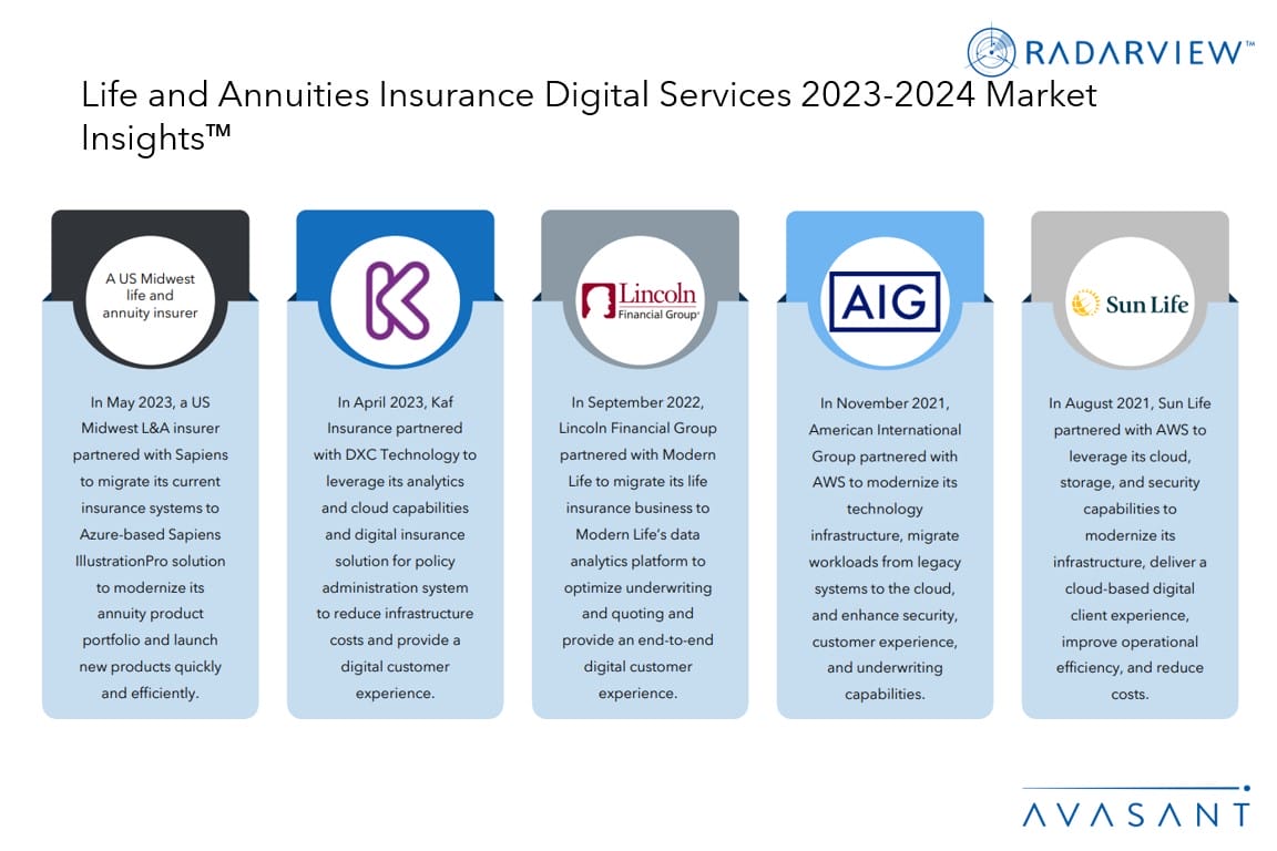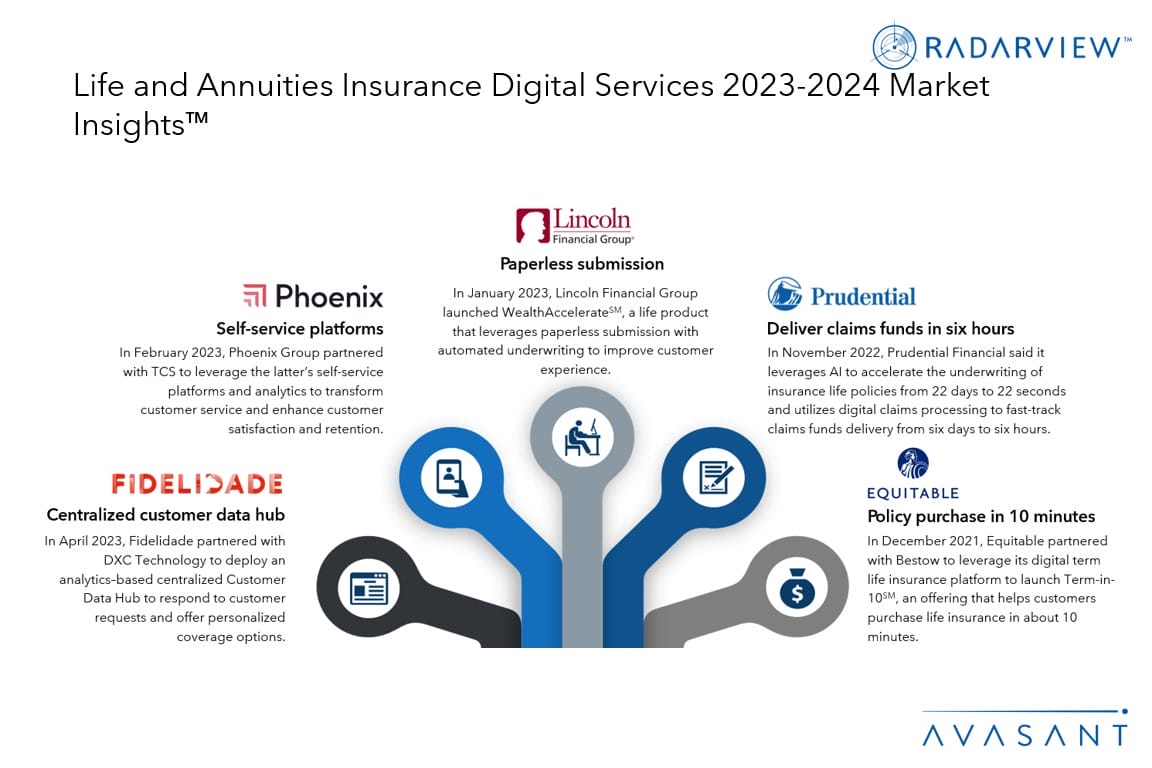 Please refer to Avasant’s Life and Annuities Insurance Digital Services 2023-2024 RadarView™ for detailed insights on the service providers and supply-side trends.