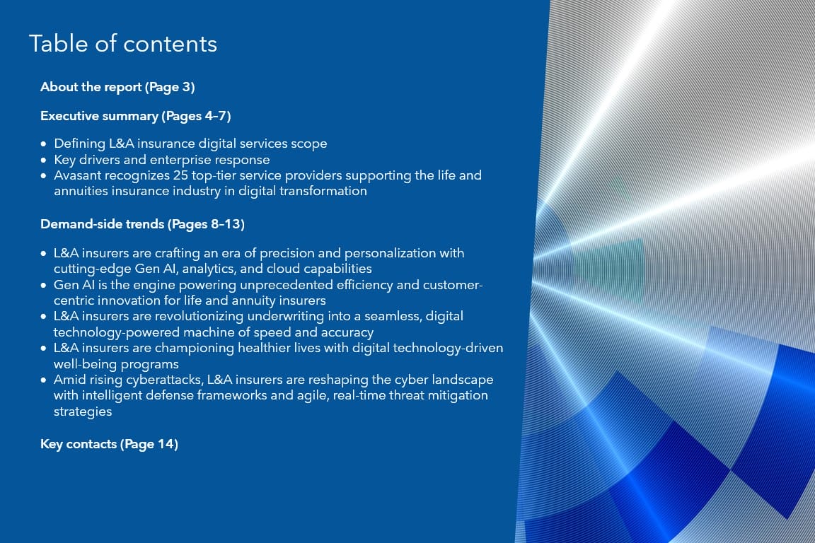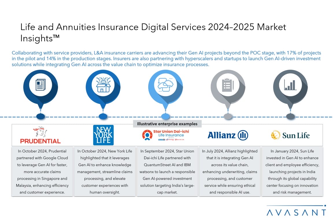 Read the Research Byte based on this report. Please refer to Avasant’s Life and Annuities Insurance Digital Services 2024–2025 RadarView™ for detailed insights on the service providers and supply-side trends.