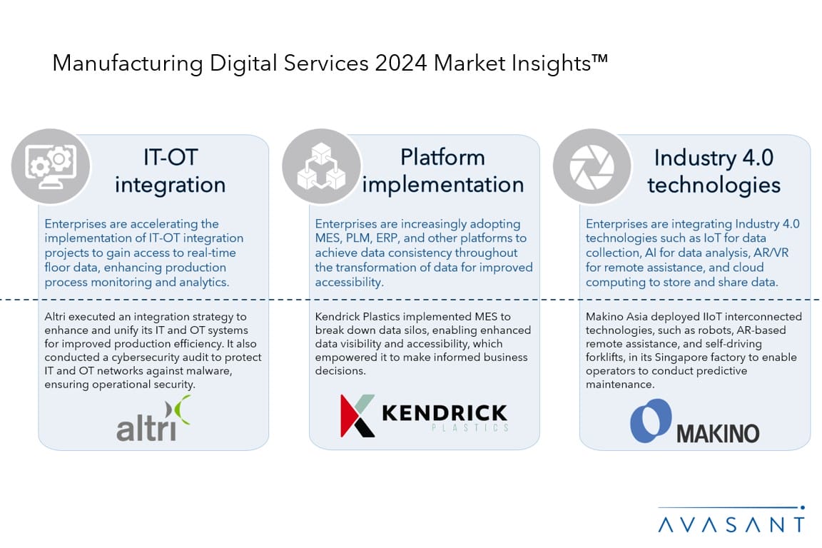 The Manufacturing Digital Services 2024 Market Insights™ helps enterprises in this sector identify important market trends and challenges for any digital project they participate in.