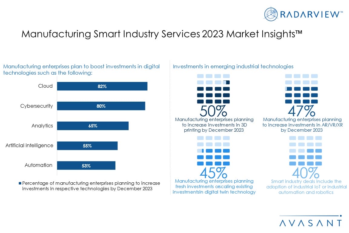 Please refer to Avasant’s Manufacturing Smart Industry Services 2023 RadarView™ for detailed insights on the service providers and supply-side trends.