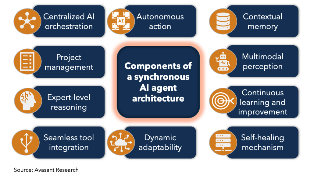 A synchronous AI agent is an advanced framework that streamlines complex workflows by breaking them down into smaller, manageable sub-tasks. Each sub-task is handled by specialized AI agents proficient in their respective domains.