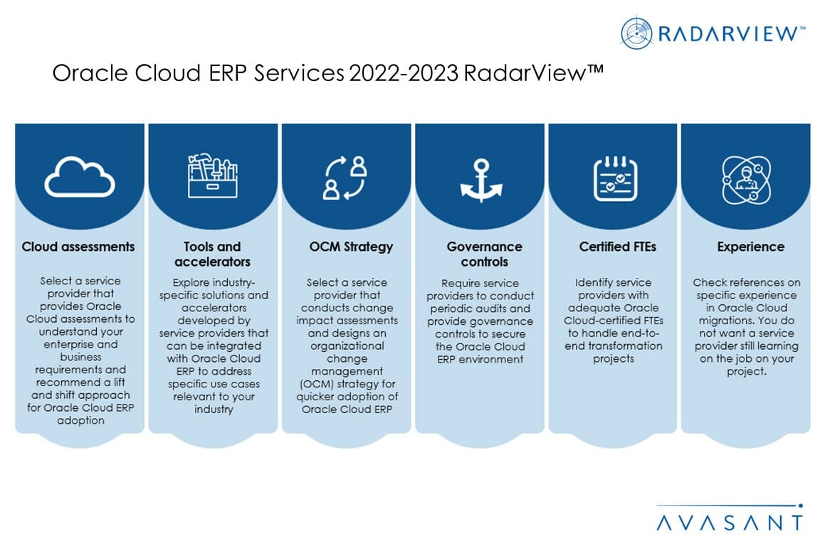 This RadarView helps enterprises define their approach for Oracle Cloud ERP adoption and to identify the right implementation partner to support them. It begins with a summary of key trends shaping the market and Avasant’s viewpoint on the road ahead for organizations adopting Oracle Cloud ERP over the next 12 to 18 months.