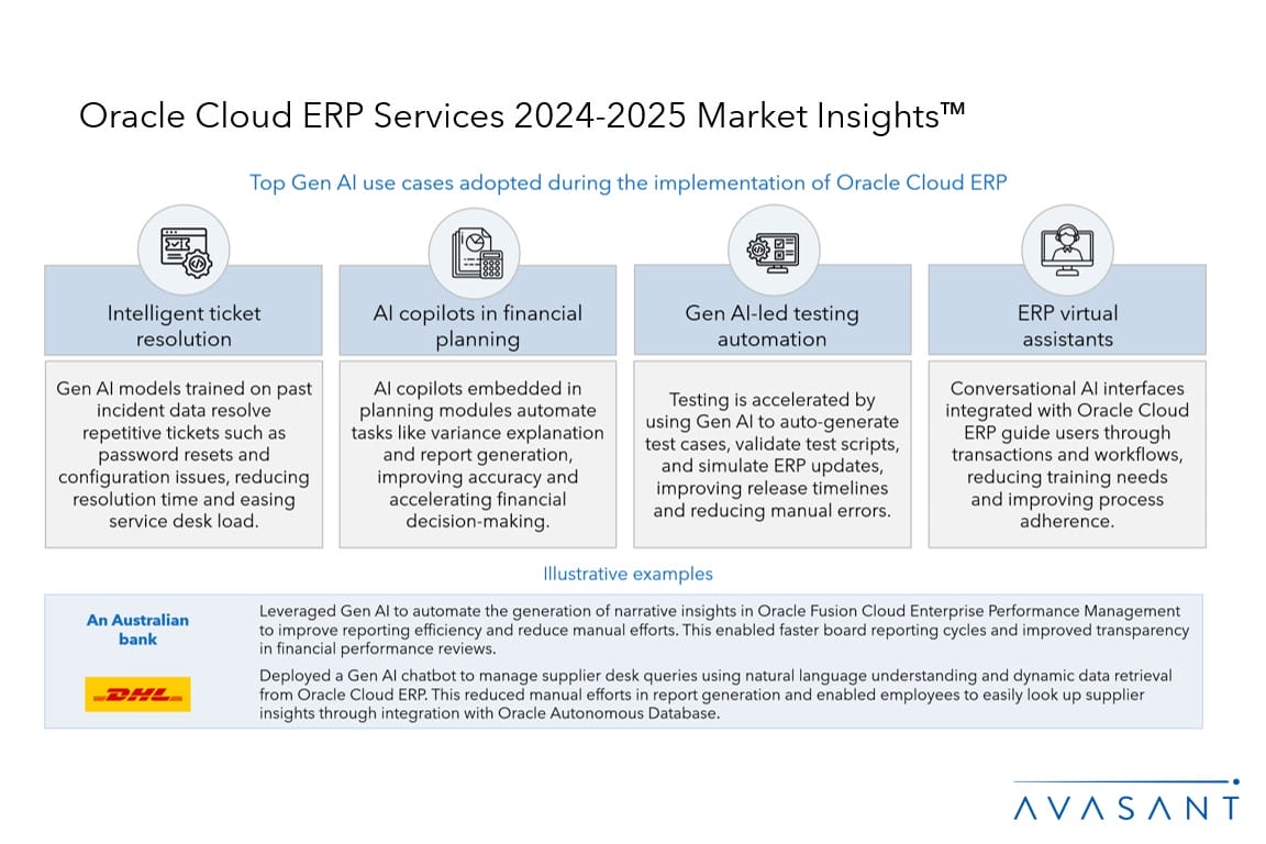 This report identifies key demand-side trends in the Oracle Cloud ERP services space, helping enterprises define their strategy for Oracle Cloud ERP adoption. It also provides an overview of evolving enterprise priorities in Oracle Cloud ERP adoption, highlighting how organizations are modernizing operations, enabling new business models, and selectively applying generative AI to drive efficiency.