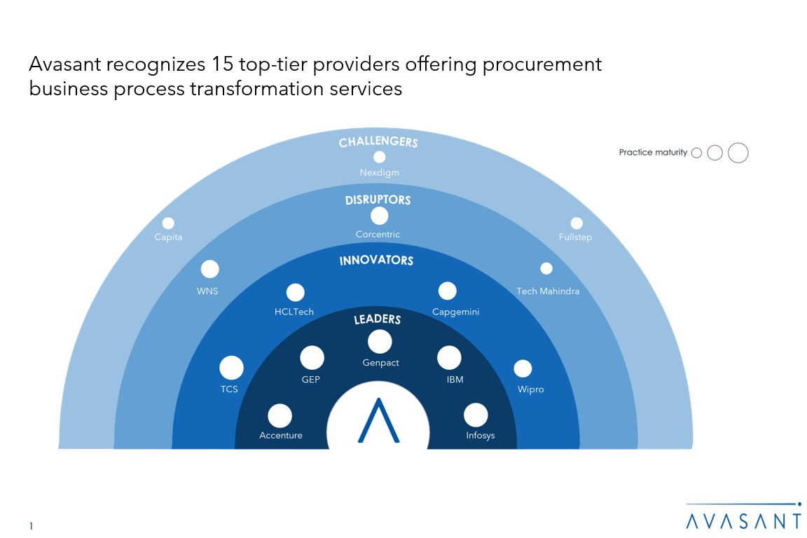 • Avasant recognizes 15 top-tier providers offering procurement business process transformation services