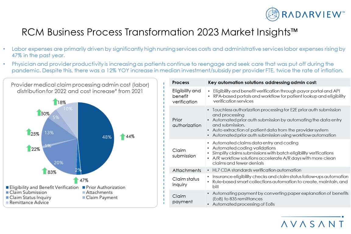 Please refer to Avasant’s RCM Business Process Transformation 2023 RadarView™ for detailed insights on the service providers and supply-side trends.