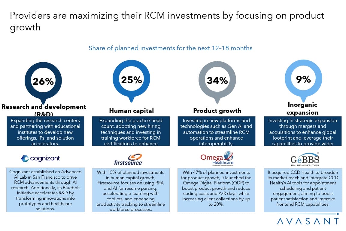 • Providers are maximizing their RCM investments by focusing on product growth.
