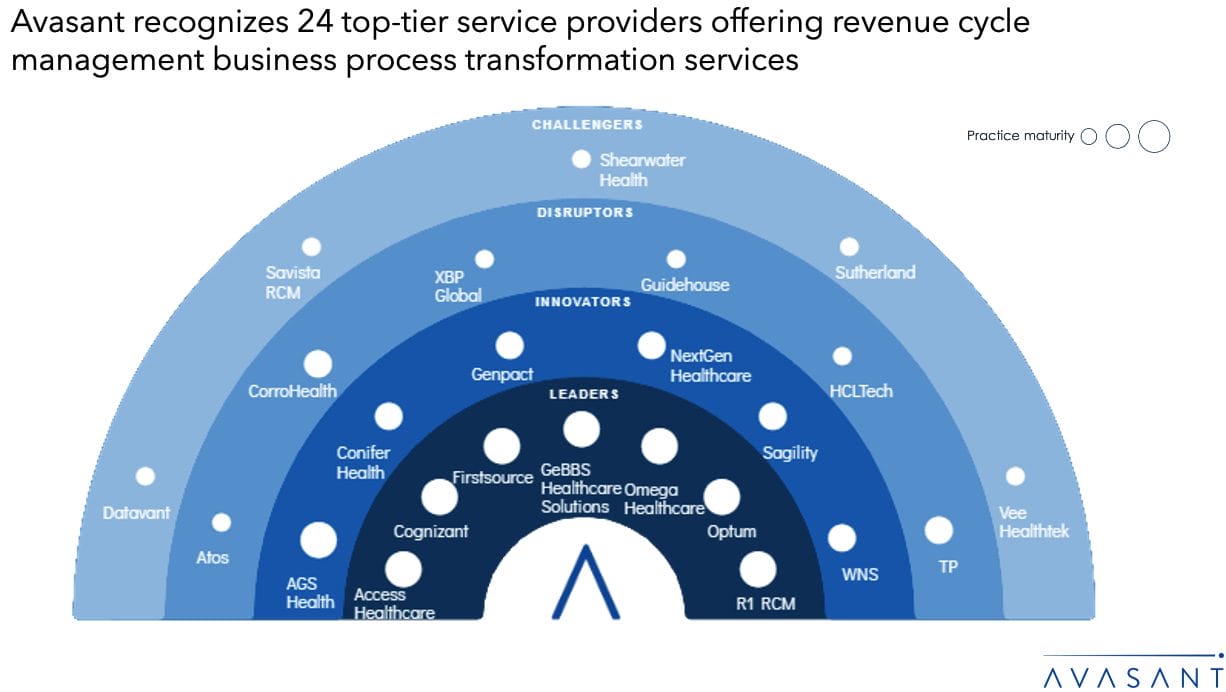 Read the Research Byte based on this report. Please refer to Avasant’s Revenue Cycle Management (RCM) Business Process Transformation 2025 RadarView™ for detailed insights on the service providers and supply-side trends.