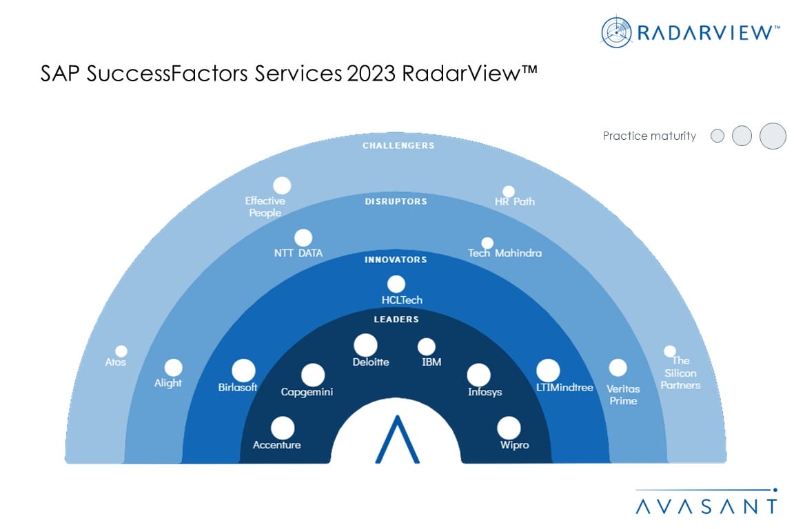 This RadarView includes a detailed analysis of the following SAP SuccessFactors service providers: Accenture, Alight, Atos, Birlasoft, Capgemini, Deloitte, Effective People, HCLTech, HR Path, IBM, Infosys, LTIMindtree, NTT DATA, Tech Mahindra, The Silicon Partners, Veritas Prime, and Wipro.