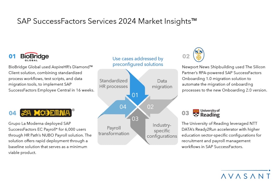 The SAP SuccessFactors Services 2024 Market Insights™ aids enterprises in identifying important market trends and challenges for any SAP SuccessFactors migration journey that they take part in.