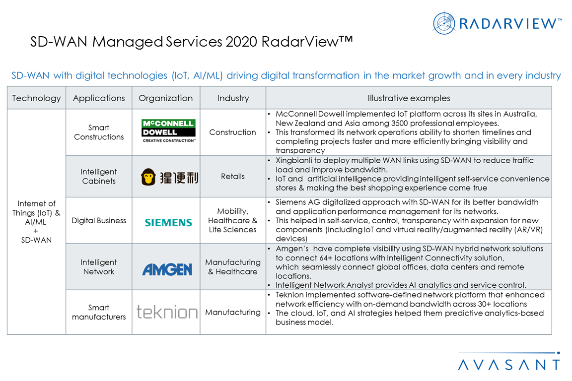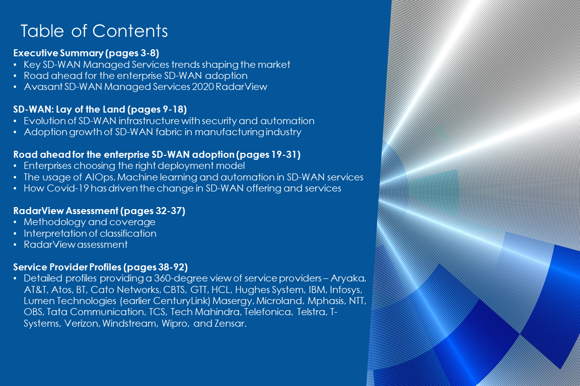 The SD-WAN Managed Services 2020 Radarview™ Report highlights key trends how different industries adopted SD-WAN, lays out the view on the road ahead for enterprises, and highlights the role of services providers in enabling security as primary focus for the future.