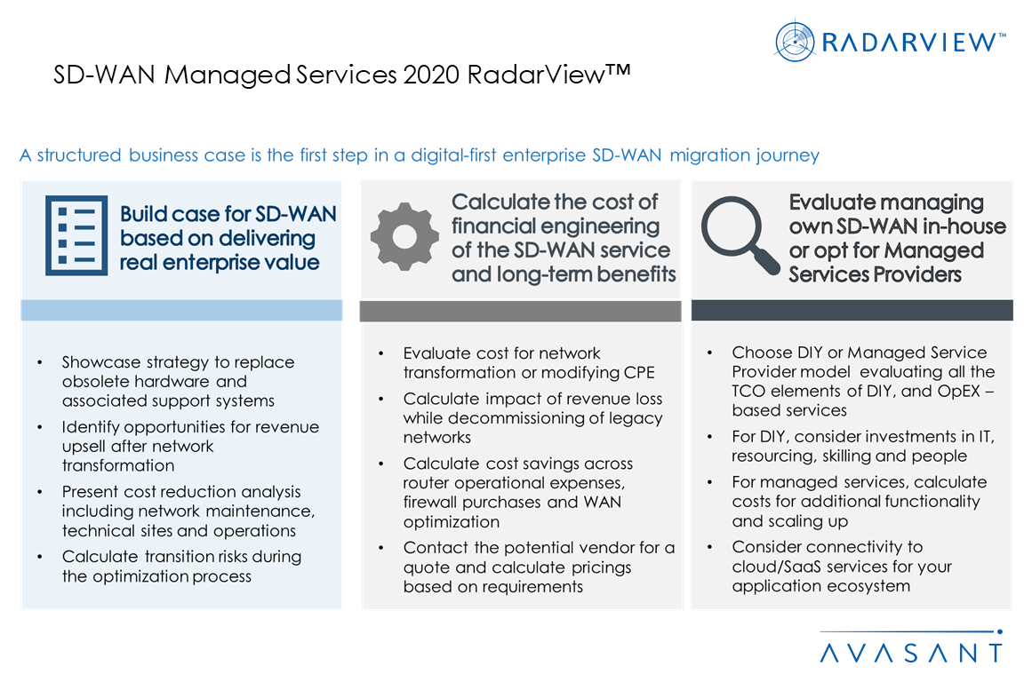 The report provides a view into market trends and developments, and best practices to help build a granular understanding of the SD-WAN ecosystem. The study showcases key capabilities of the service providers and their potential to help enterprises identify the right partner. It also highlights Avasant’s view on the road ahead for enterprises leveraging SD-WAN Managed Services over the next 12 to 18 months.