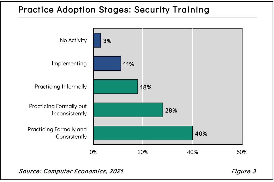 Security training is a business best practice that involves the training of all IT and user personnel in a company’s security policies, procedures, and best practices to increase awareness and ensure compliance. It is a highly advisable practice for every organization. Many companies report the existence of security training, yet there is ample room for improvement. This report begins by defining security training and summarizing the main types of training available. We next study the adoption and practice levels and examine those by organization size and sector. We conclude with best-practice recommendations. (16 pp., 6 fig.)