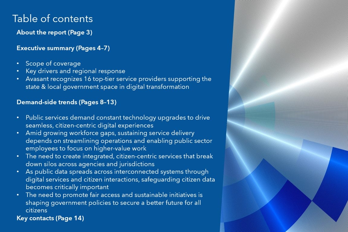 Read the Research Byte based on this report. Please refer to Avasant’s State and Local Government Digital Services 2025 RadarView™ for detailed insights on the service providers and supply-side trends.