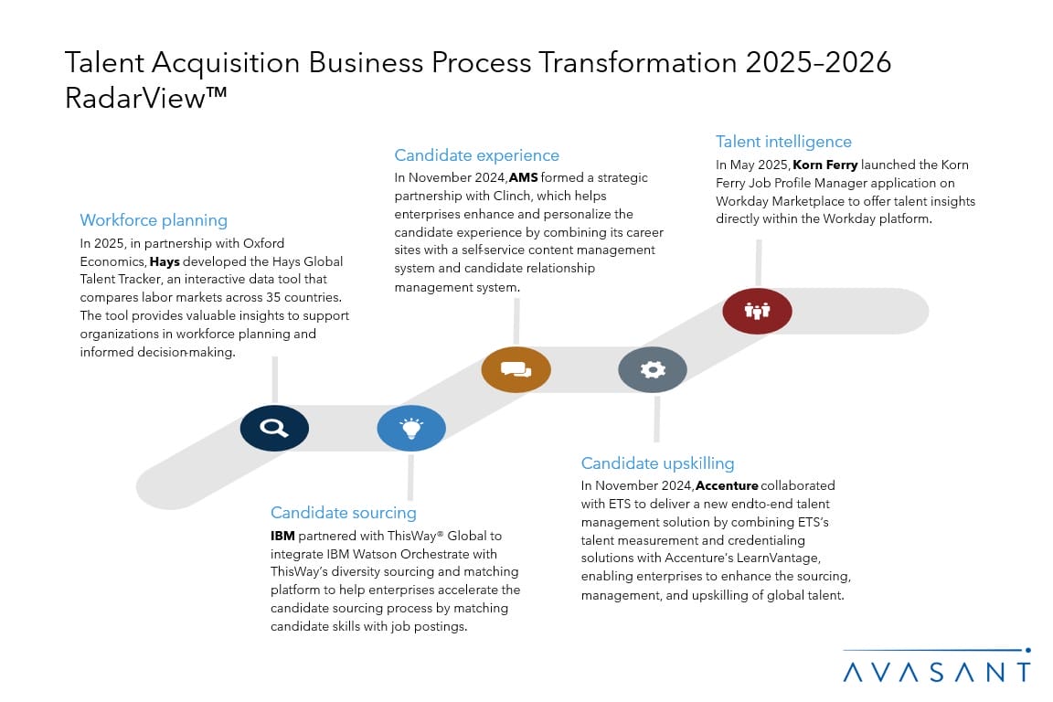 Read the Research Byte based on this report. Please refer to Avasant’s Talent Acquisition Business Process Transformation 2025–2026 Market Insights™ for detailed insights on the state of the market.