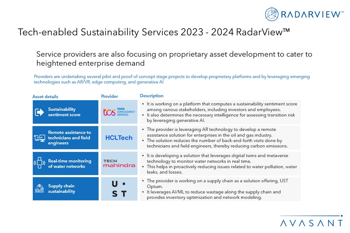 Please refer to Avasant’s Tech-enabled Sustainability Services 2023-2024 Market Insights™ for demand side trends.