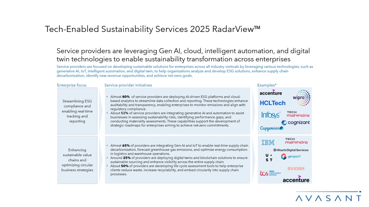 Read the Research Byte based on this report. Please refer to Avasant’s Tech-Enabled Sustainability Services 2025 Market Insights™ for demand-side trends.