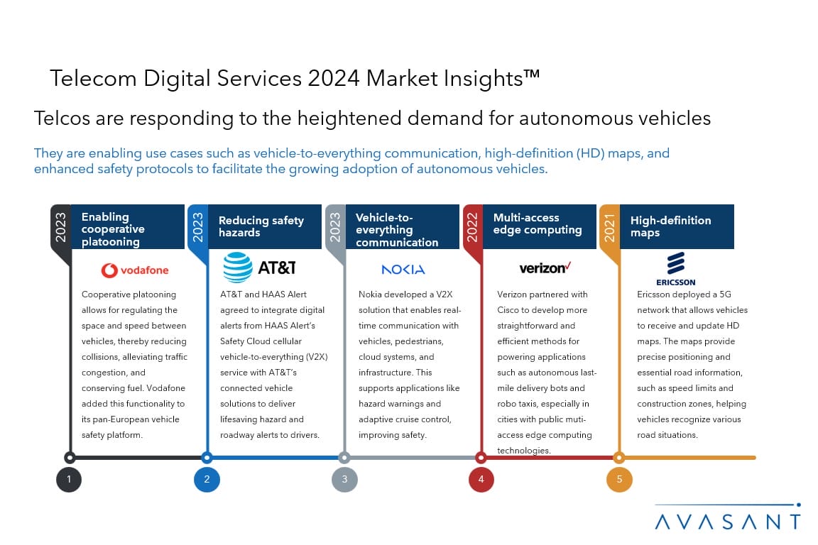 Telecom enterprises worldwide are leveraging emerging technologies to enhance customer experience and unlock operational efficiency in business processes. They are investing in 5G and edge computing to achieve higher connectivity speeds for new-age use cases such as remote patient monitoring and autonomous vehicles. Telcos are also doubling down on cybersecurity measures to comply with stringent regulations for customer data security. Lastly, they are evaluating the efficacy of generative AI for optimizing horizontal and vertical business processes.