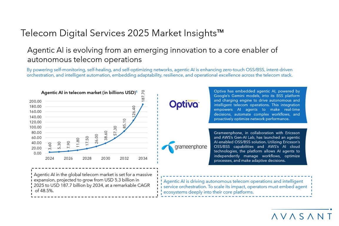 Telecom enterprises are accelerating the adoption of agentic and generative AI (Gen AI) globally to drive autonomous network operations and transform customer engagement. Investments in cloud-native and edge-native platforms are enabling ultra-low latency connectivity for advanced use cases, including industrial automation, immersive media, and connected healthcare. In response to evolving regulatory requirements, telcos are embedding zero-trust security frameworks and AI-powered threat detection across their digital estates. Increasingly, operators are moving beyond pilots to scale Gen AI for process automation, predictive assurance, and intelligent orchestration, unlocking new efficiencies and revenue streams across both horizontal and vertical business functions.
