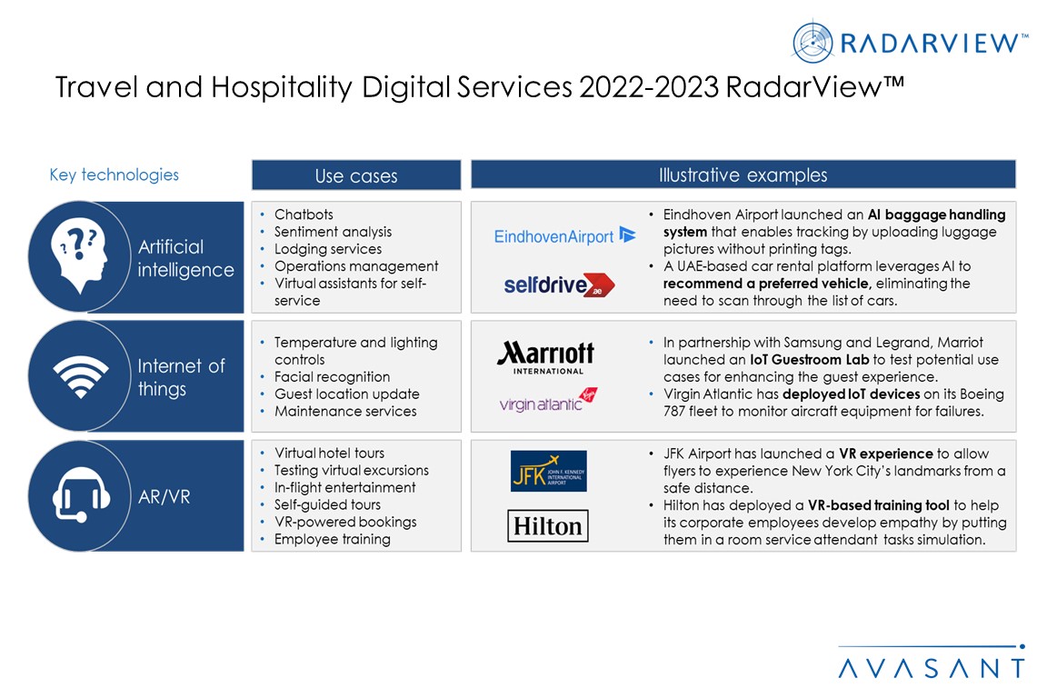 This report helps travel and hospitality companies craft a robust strategy for digital transformation based on industry outlook and best practices. It begins with a summary of key trends shaping the travel and hospitality industry, followed by the industry outlook over the next 18–24 months. We continue with a detailed assessment of 20 leading service providers offering travel and hospitality digital services. Each profile provides an overview of the service provider, its industry-specific solutions, and a list of representative clients and partnerships, along with brief client case studies. Each profile concludes with analyst insights on the provider’s practice maturity, investments and innovations, and partner ecosystem. The report can aid businesses in identifying the right partners and service providers to support their digital transformation journeys.