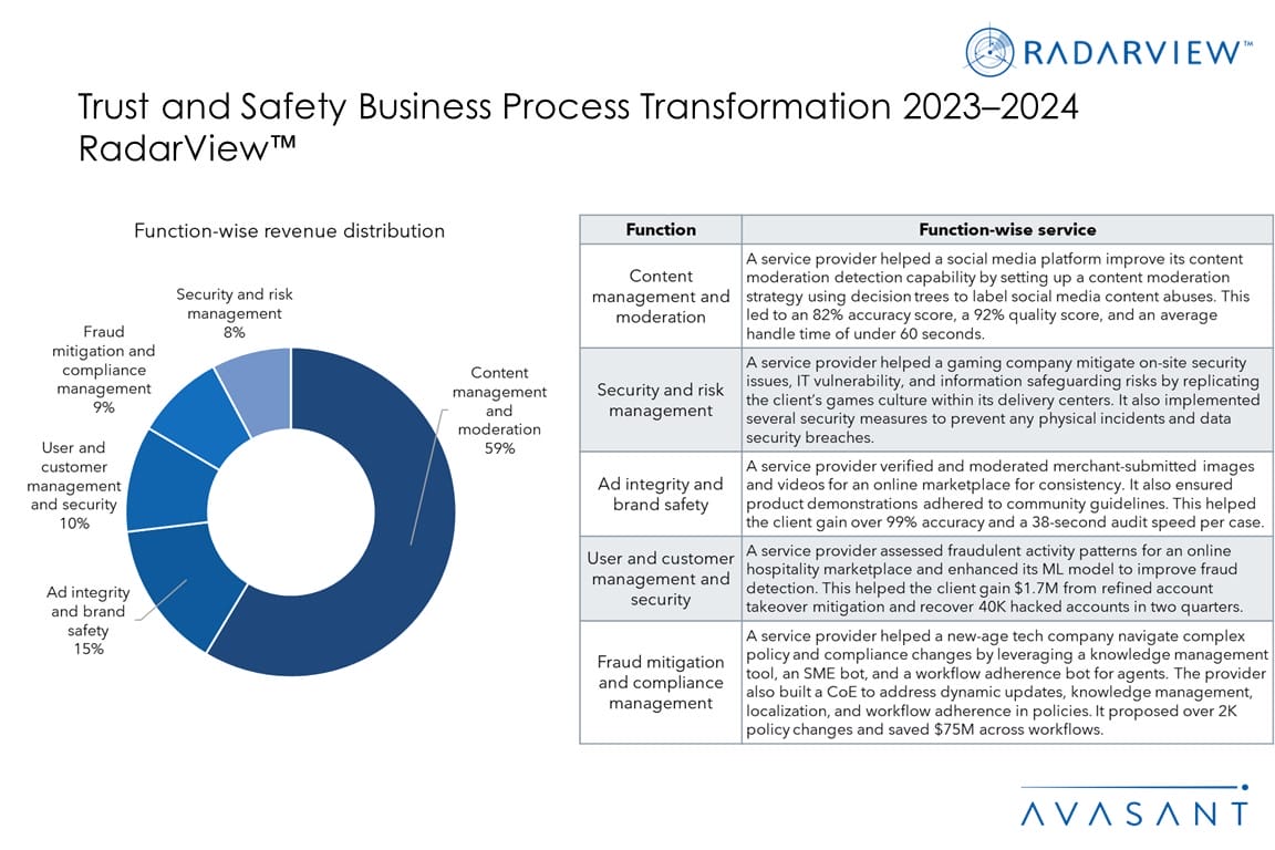 Please refer to Avasant’s Trust and Safety Business Process Transformation 2023–2024 Market Insights™ for detailed insights on the demand-side trends.