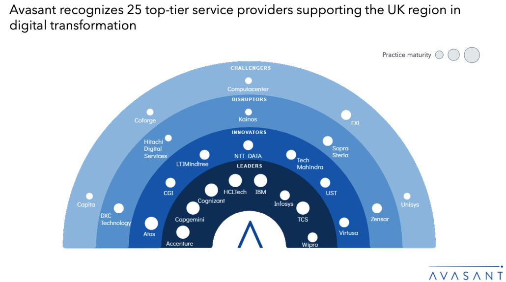This RadarView includes an analysis of the following service providers in the UK region’s digital services space: Accenture, Atos, Capgemini, Capita, CGI, Coforge, Cognizant, Computacenter, DXC Technology, EXL, HCLTech, Hitachi Digital Services, IBM, Infosys, Kainos, LTIMindtree, NTT DATA, Sopra Steria, TCS, Tech Mahindra, Unisys, UST, Virtusa, Wipro, and Zensar.