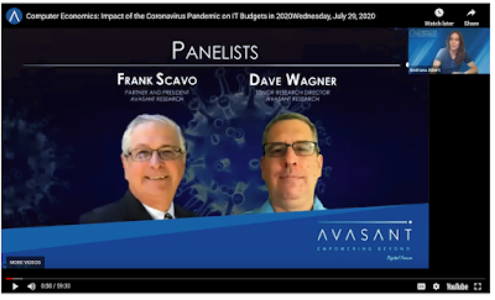 In addition, Frank Scavo, Avasant partner and president of Computer Economics, and Dave Wagner, senior research director at Computer Economics, conducted a free webinar to present a summary of the results both surveys.