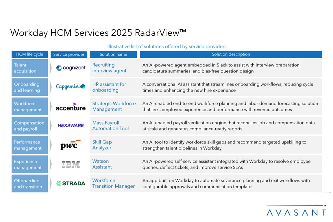 Read the Research Byte based on this report. Please refer to Avasant’s Workday HCM Services 2025 Market Insights™ for detailed insights on the demand-side trends.